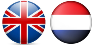At the top right of each page you will see a circle with a flag. You can use this to switch between Dutch and English.