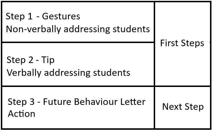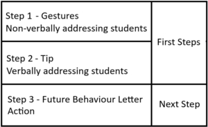 Teachers address pupils’ behaviour and commitment in three structured steps.