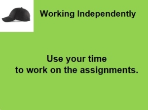 - Buy a board with a clip to attach the list for ‘Working Independently’. Print a small version of the green image of the ‘Triangle‘ and stick it on the back of the board. You use this board + list + image during independent work. You can show the image on the back to a student as a way of non-verbally addressing the pupil on behaviour or effort when you walk through the classroom, without this leading to a ‘Tip‘.